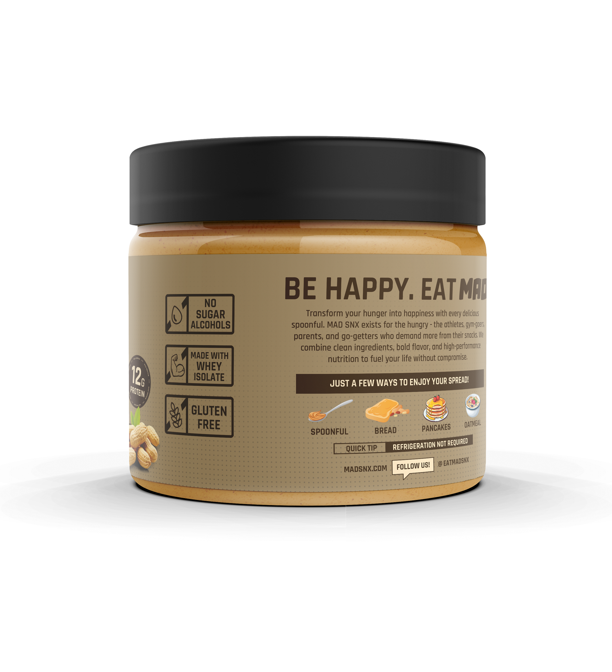 Introducing our all-new High Protein Peanut Spread. Crafted with the highest quality dry roasted peanuts, whey protein isolate, and sweetened with natural honey powder. Packed with 12g of protein per serving, Gluten Free, Non-GMO, and No Sugar Alcohols. And super MACRO-FRIENDLY!